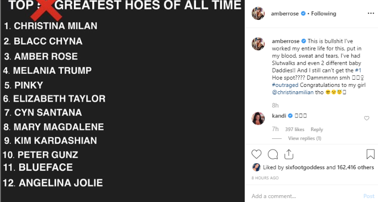 Amber Rose is sulking over not getting the number 1 hoe spot in ‘greatest hoes of all time’ list, even though she topped Mary Magdalene.